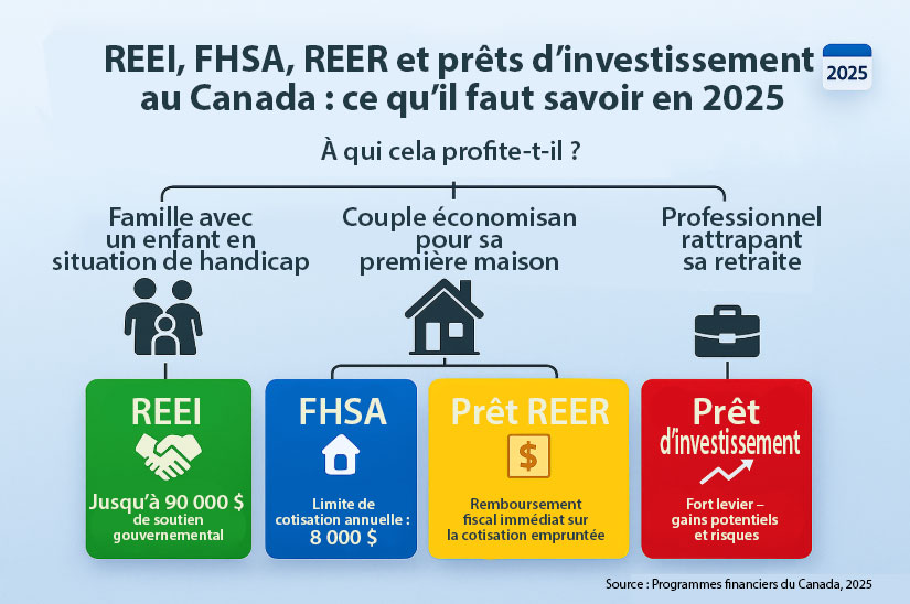 Les prêts REEI, CELI, prêts à l’investissement et prêts REER vous ouvrent différentes portes, qu’il s’agisse de protéger l’avenir d’un être cher, d’acheter une première maison ou de constituer une épargne-retraite. La bonne stratégie dépend de vos revenus, de vos objectifs et de votre tolérance au risque. Ce qui fait la différence, ce n’est pas un seul produit, mais un plan qui s’adapte à votre vie.