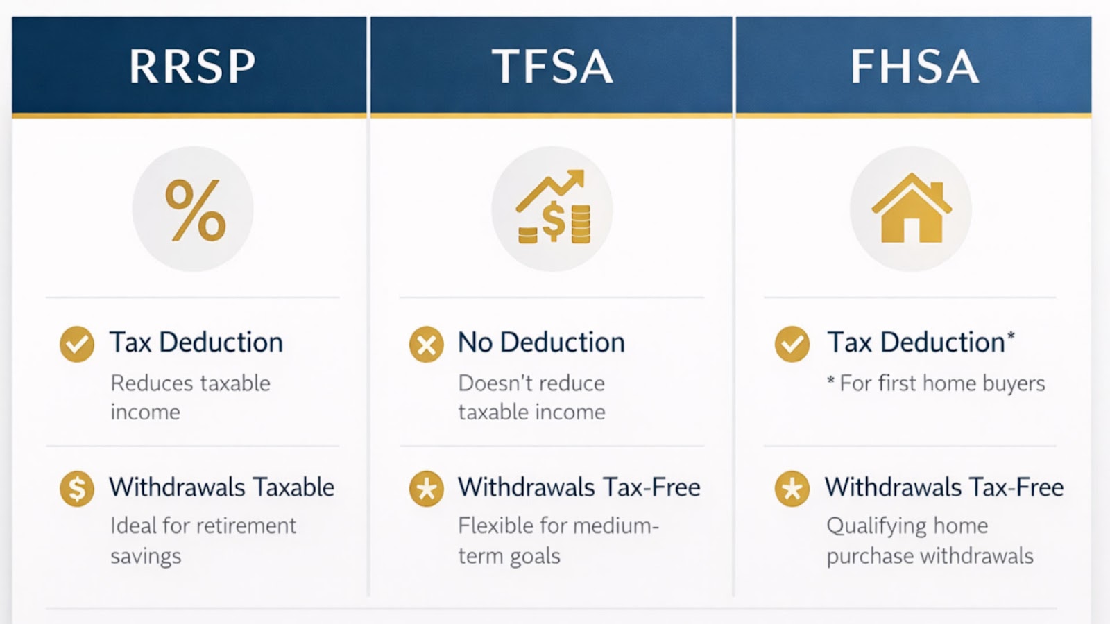 | TFSA | No deduction | Withdrawals tax-free; flexible for medium-term goals |